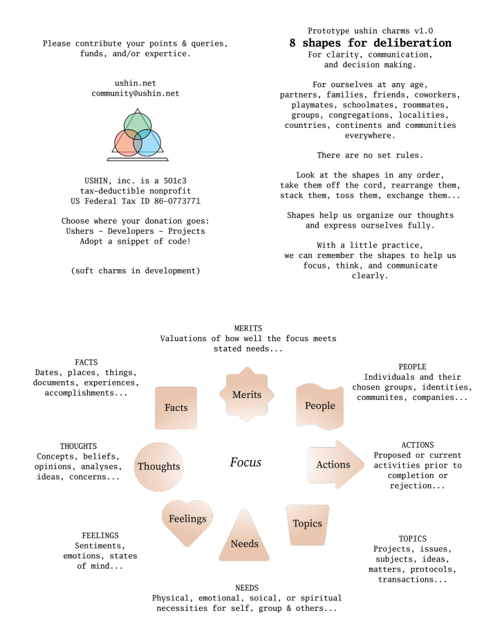 When ushin shapes are recognized metadata by various platforms and protocols they become universal building blocks toward open, expanding, deliberation among disparate groups.