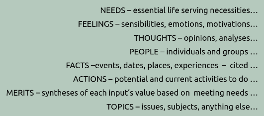 Users, groups and systems create and deliberate their own indexing systems, taxonomies, connecting terms, definitions, synonym and disambiguation techniques +/- ushin shapes. As a distributed system these may remain separate, and in time the building blocks will be deliberated to find common tools for handing input.